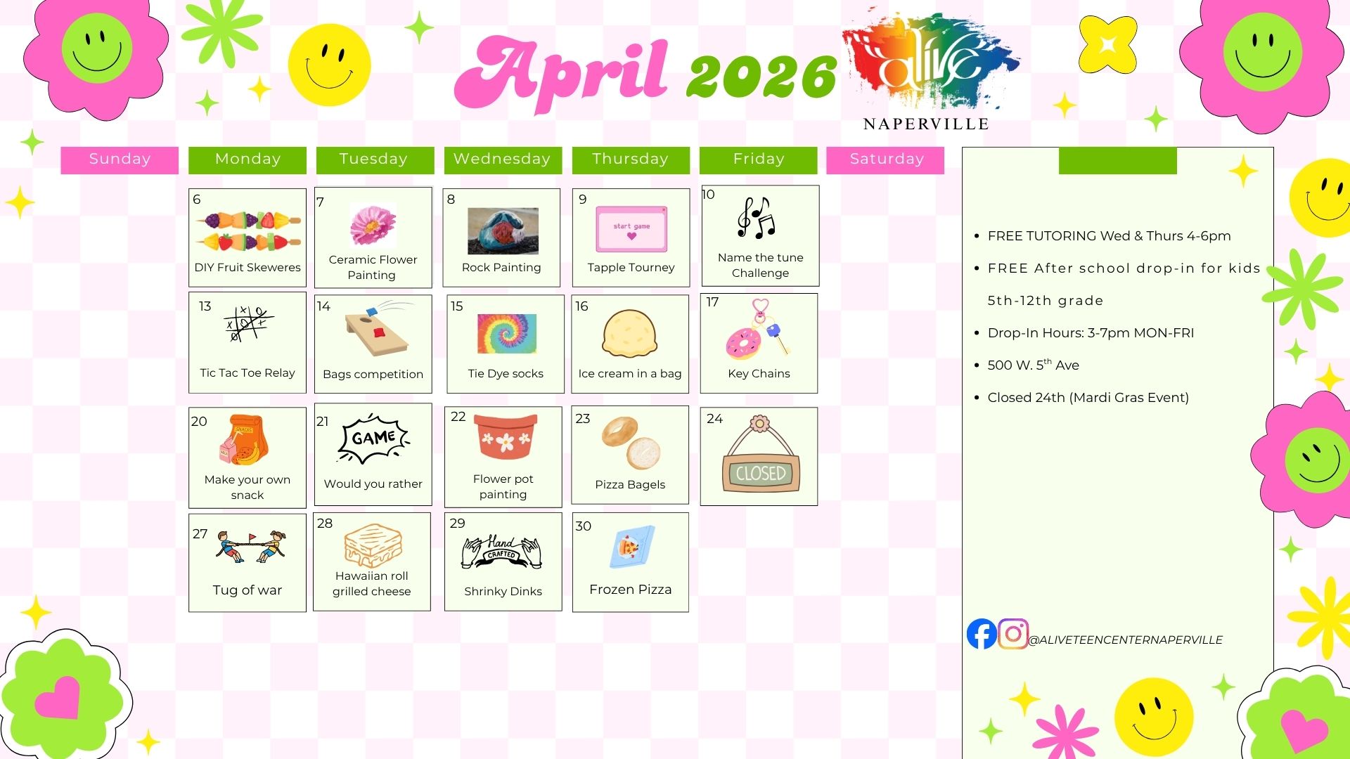 ALIVE Naperville offers free tutoring services in partnership with Merry Tutors to support our students in grades Kindergarten through 12th in every subject. Tutoring will be held every Wednesday and Thursday from 4:00 – 6:00 PM. Registration is not required, just drop in!